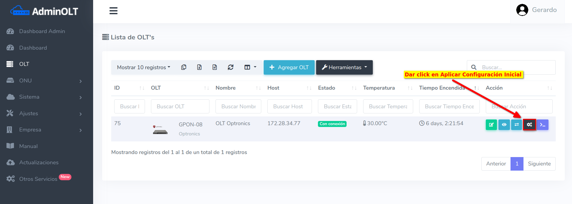 Después de aplicar las configuraciones iniciales, puede demorar entre 10-20 minutos en verse reflejados en su OLT.