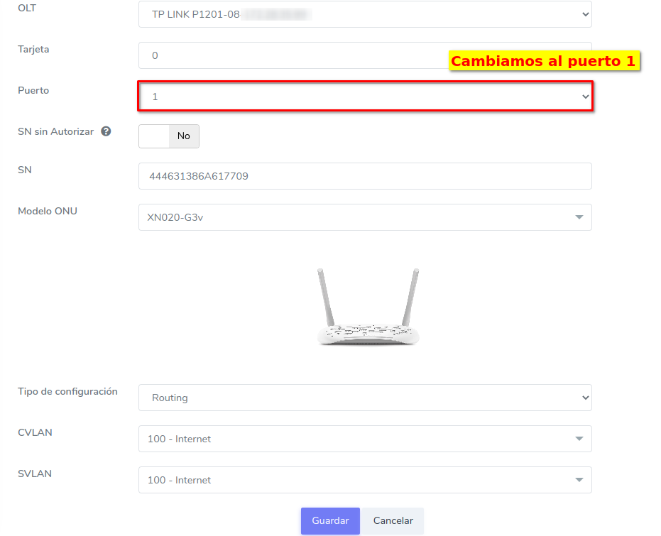Para editar el Puerto de una ONU en la OLT existen 2 formas de hacerlo: