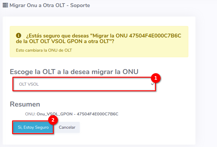 2Seleccionamos la OLT a la que queremos migrar la ONU