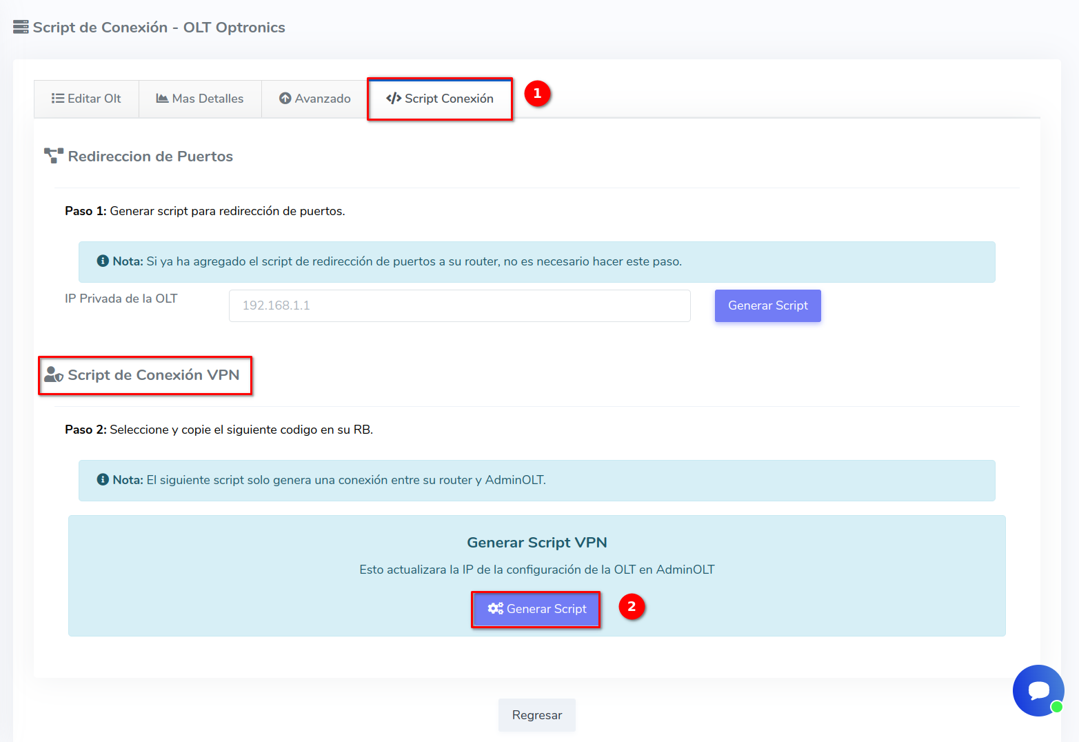 2 Nos dirigimos a la pestaña Script Conexión y en el apartado Script de Conexión VPN seleccionamos el botón con la leyenda Generar Script.