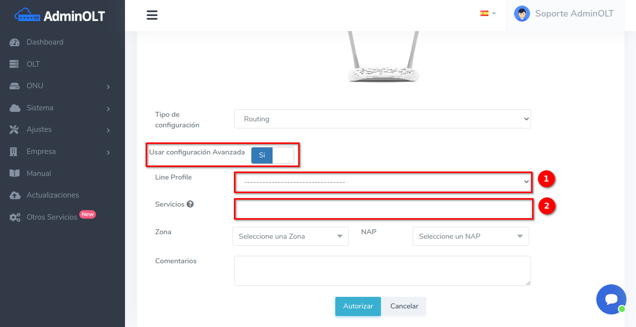 AdminOLT ahora permite autorizar ONU's TP-Link utilizando configuraciones avanzadas, utilizando perfiles de línea (Line Profiles) previamente creadas en la OLT o simplemente al momento de autorizar y seleccionar Crear perfil genérico, AdminOLT se encargará de crear una configuración con los datos que usted seleccione.