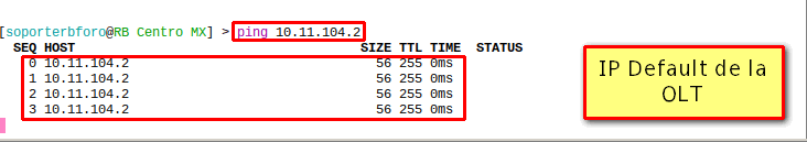 2 Por ultimo debemos probar la conexión con la OLT con la ip default que se asigno.