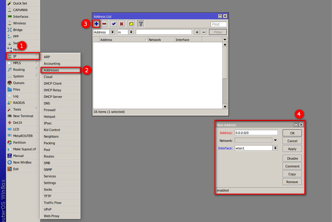 1En IP Address asignamos la IP a cada interfaz como indica las siguientes imágenes, las cuales se basan en la topología mostrada al inicio del manual.