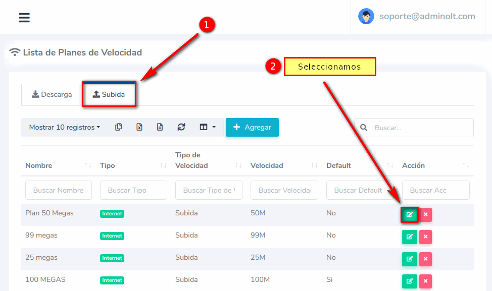¿Como edito un Plan de Velocidad de Bajada?