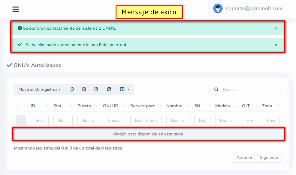 Eliminar ONU de AdminOLT y OLT desde Lista de ONU's Autorizadas