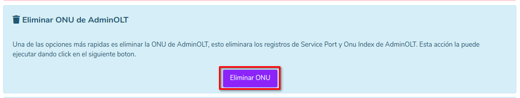 Sí decide eliminar la onu de AdminOLT. De click en el siguiente botón