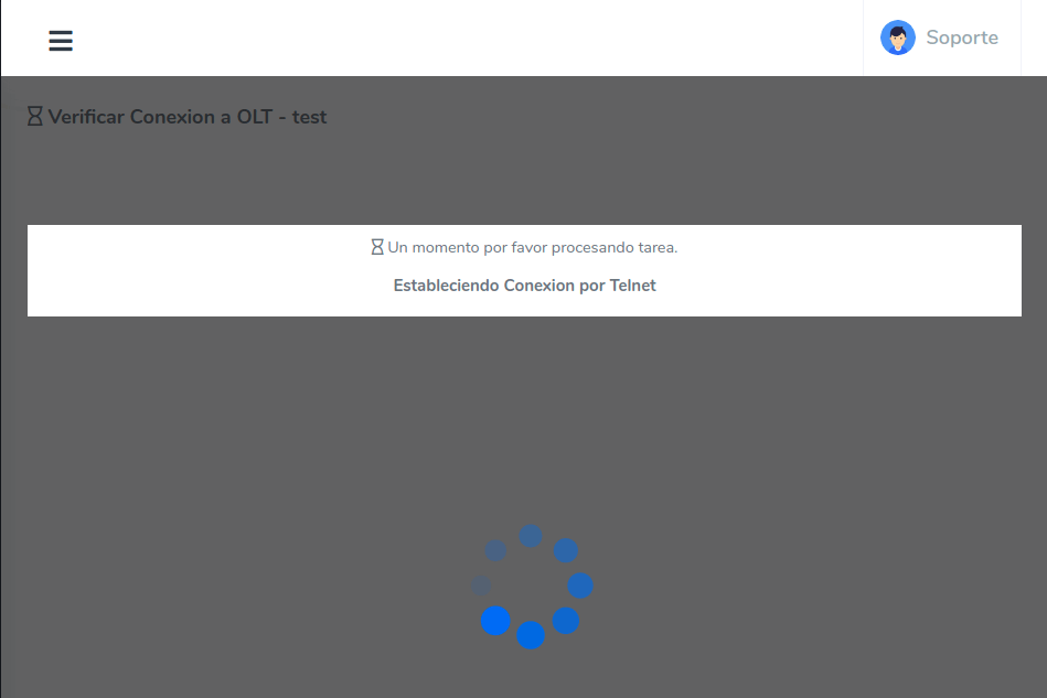 Podrá ver una pantalla de carga donde verá los estados de las conexiones como SSH, puerto PON, etc.