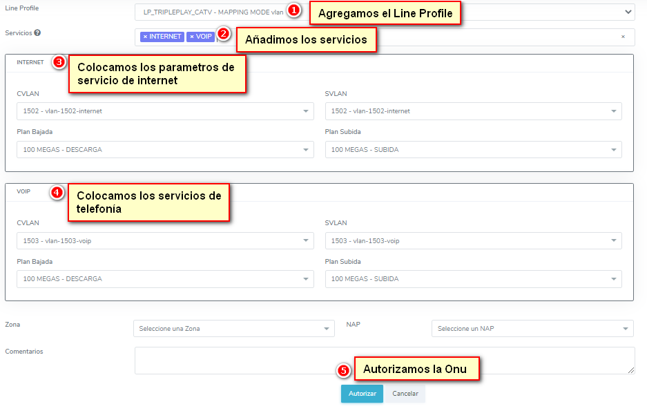 - Triple Play con Line Profile mapeado por VLAN